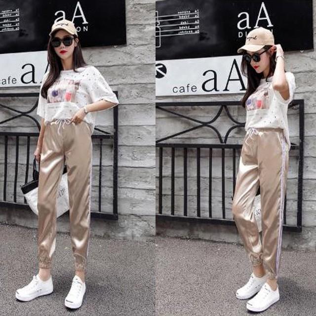 ダブルライン ジョガーパンツ 赤 レディース ボトム オルチャン 韓国コーデ インスタ映え トレンド スポーティ ダンス サテン Vuab174 And Sherry 通販 Yahoo ショッピング